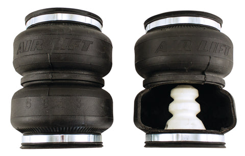 LoadLifter 5000 ULTIMATE adjustable air spring kits feature all of the benefits of our heaviest rated air spring with the addition of an internal jounce bumper inside the spring for the ultimate in ride comfort. An Air Lift exclusive product! Fits vehicles with in-bed hitches. Tow and haul the heaviest loads with safety and comfort with LoadLifter 5000 ULTIMATE. Works with vehicle's leaf springs to provide up to 5,000 lbs. of rear load leveling capacity and keeps the vehicle riding stable, level and comfortable whether loaded or unloaded. Fully adjustable from 5 to 100 PSI. The closed-cell urethane foam jounce bumper inside the ULTIMATE air springs provide a cushion of air that absorbs shock, eliminates harsh jarring on rough roads and protects vehicles carrying heavy loads. Never bottom out again with the ULTIMATE! LoadLifter 5000 ULTIMATE air springs are maintenance free! Safely run with zero air pressure because of the internal jounce bumper. Replaces factory jounce bumper that is sometimes removed when adding air springs. Requires no drilling into frame! Includes industry-exclusive 60 Day No Questions Money Back Guarantee! Includes the most comprehensive Lifetime Warranty in the industry---covers all kit contents including brackets, fittings and air line. Air springs are built like a tire and are reinforced by durable, 2-ply fabric for maximum strength. Exclusive upper and lower roll plates included. Protect the springs from sharp edges, such as brackets or the frame. The kit includes 2 air springs, brackets, air lines, Schrader valve and all of the hardware needed for installation. Includes fully illustrated instruction manual. Add an Air Lift on-board air compressor system to inflate and deflate air springs with the touch of a button from inside or outside of the vehicle.