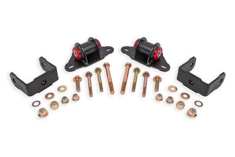 Transmission mounts are used to keep the transmission in place and absorb energy from it. However, factory transmission mounts often do little to minimize transmission deflection, resulting in lackluster throttle response, slower reaction times, and less accurate shifts in cars with manual transmissions. BMR Suspensions Polyurethane Transmission/Differential Mount Kit (TM570) is built to reduce transmission deflection and designed for drag racing, street performance, and handling applications. When performance is a must, rely on BMR Suspension!