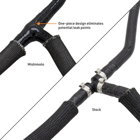 The 6.7L Powerstroke is a powerhouse built for serious work, but its factory coolant overflow hose uses plastic fittings that are known to crack and leak over time. Left unchecked, these leaks can lead to overheating and unexpected downtime. Upgrade your cooling system with a Mishimoto one-piece silicone Y-hose designed specifically for your 6.7L Powerstroke to eliminate those weak points and keep your truck on the road.--This direct-fit hose replaces those old, brittle plastic connections with a seamless silicone design that removes common failure points. A built-in one-way valve maintains proper coolant flow, and protective heat sleeves help guard the hose against high engine bay temperatures.--Made from multi-layer silicone that outlasts the factory rubber, this hose is built to handle the demands of the Powerstroke platform. Each kit includes new worm-gear clamps for a consistent, reliable seal and is backed by the Mishimoto Lifetime Warranty.