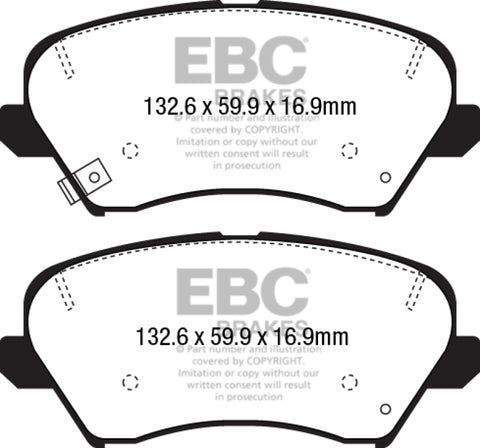 EBC Yellowstuff is an aramid fibre based brake compound with high brake effect form cold and is possibly one of the first ever compounds that can be used for STREET AND TRACK DRIVING. These pads do not require warm up but do get even stronger under the heat of hard driving. These are not a low dust pad and if your desire is for a low dust premium street use pad, you should consider EBC Redstuff.When considering full race use, Yellowstuff has been a strong favourite, having been used for two years in the Swedish Camaro Cup and at numerous other race events where a stock caliper system is fitted.It is also the choice of 90-percent of the Mazda MX5 Miata competitors in the UK race series and has an unblemished record as rotor friendly track pad for vehicles up to 2000 lbs weight or 200 BHP.In the USA the SCCA and NASA drivershave been testing Yellowstuff with feedback and good reports POURING in from a 543 test driver major market proving event with these groups. Read that figure again 543 test drivers.There is no guesswork here.