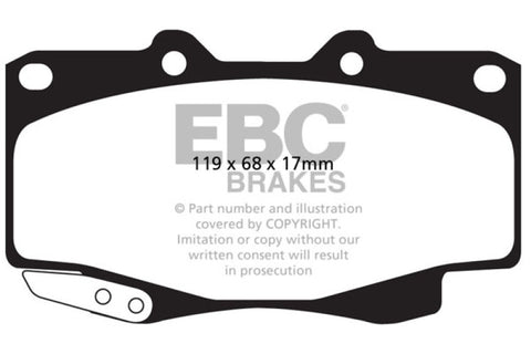 EBC Yellowstuff is an aramid fibre based brake compound with high brake effect form cold and is possibly one of the first ever compounds that can be used for STREET AND TRACK DRIVING. These pads do not require warm up but do get even stronger under the heat of hard driving. These are not a low dust pad and if your desire is for a low dust premium street use pad, you should consider EBC Redstuff.When considering full race use, Yellowstuff has been a strong favourite, having been used for two years in the Swedish Camaro Cup and at numerous other race events where a stock caliper system is fitted.It is also the choice of 90-percent of the Mazda MX5 Miata competitors in the UK race series and has an unblemished record as rotor friendly track pad for vehicles up to 2000 lbs weight or 200 BHP.In the USA the SCCA and NASA drivershave been testing Yellowstuff with feedback and good reports POURING in from a 543 test driver major market proving event with these groups. Read that figure again 543 test drivers.There is no guesswork here.