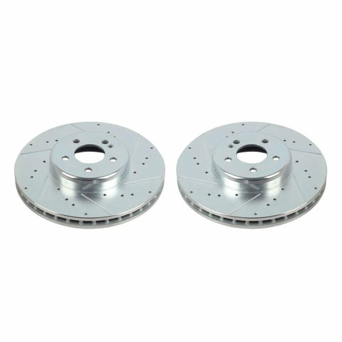 Power Stop drilled and slotted rotors provide a bolt-on upgrade for improved brake cooling and performance. Precision cross-drilled for maximum cooling and maximum performance during extreme conditions; rounded slots sweep away gasses, dust, and moisture to keep a clean friction contact patch on the rotor surface. Silver zinc dichromate plating resists rust and corrosion. With a direct OE fit, there are no special modifications needed.