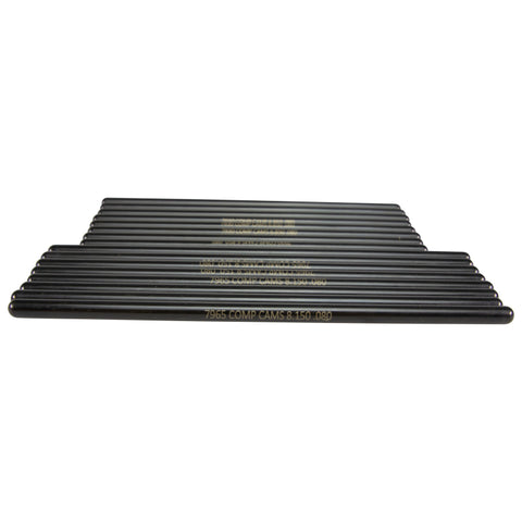 COMP Cams HEMI pushrod sets are a continuation of the Hi-Tech Pushrod line. These pushrods sets are engineered to provide optimal preload for specific late-model HEMI applications when using performance camshafts. Like all COMP Cams Hi-Tech Pushrods, these are a one-piece construction from .080” wall chromemoly tubing and are cryo-treated for extended durability. In addition, they feature precision formed and reinforced ball type ends, and the whole pushrod is black oxide finished and laser etched. COMP Cams Hi-Tech Pushrod Sets are available for the 2003-08 5.7L, 2005-10 6.1L and 2009-Current 5.7L/6.4L HEMI applications.