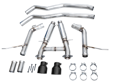 For those who like it raw and rowdy, the Track Edition is for you. The Track Edition features an integrated H-pipe followed by bullet-style resonators in the mid pipes. Beyond them lies unfiltered, dual 3" T304L that runs all the way back to dual slash-cut, double-walled tips, available in chrome silver or diamond black. All this plus 50 state emissions compliance, AWE’s Fitment Guarantee, No Check Engine Light Guarantee, and the AWE Lifetime Warranty. This version is known to get (really) rowdy in mid-range acceleration and deceleration and may be too much for many. Due to this reason, AWE Track Edition Exhausts cannot be returned based on sound preference. You’ve been warned!