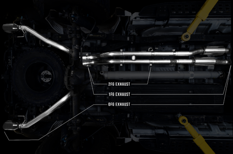 Using the same precision-engineered 3" H-pipe from the 2FG configuration, the 1FG Exhaust removes the factory front suitcase resonator as well and replaces it with two bespoke AWE resonated front sections. This version turns the Raptor’s exhaust route into a true dual configuration, producing an increase in volume and an aggressive, rasp and drone-free soundtrack fit for the Raptor. The AWE 1FG configuration grants a weight savings of 24 lbs over stock. Please note: in order to achieve the sound heard in our product videos, please allow 800-1000 miles for appropriate break-in of the 1FG/0FG configurations.The AWE Exhaust Suite for the Gen 2 Raptor is applicable to both SuperCab and SuperCrew models. Adapters for SuperCrew models are included with each AWE 2FG, 1FG, and 0FG Exhaust.