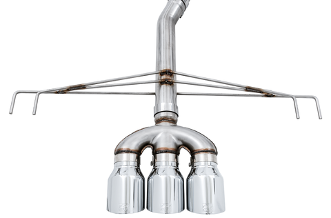 For those who like it raw and rowdy, the Track Edition is for you. The Track Edition shares the same integrated front pipe, bespoke mid pipe resonator, and precision engineering as its Touring Edition counterpart, minus AWE’s patented drone-canceling solution, 180 Technology®. In place of the 180 Technology® resonator in the rear lies a Track Edition straight section. As a result, this version is known to get (really) rowdy in mid-range acceleration and deceleration, and may be too much for many. And you can't return it if its too loud (but you can convert it to a Touring Edition). You've been warned. Running the Track Edition and think it's too loud? AWE made it easy to switch to a Touring Edition with the engineered Conversion Kit to tone it down. You're never stuck if you decide at a later date to change your volume. Important notes: The exhausts includes a 3” front pipe. This front pipe is integrated into the design of the exhausts. AWE exhausts are not designed to mate with other aftermarket front pipes. Downpipes, on the other hand, should work just fine (so long as they work with the factory-style flange). We decided to reuse the factory-style flange and gasket for reliability and long-term performance. The factory's double-layer steel gasket design is vastly superior to any aftermarket flat gasket. This design allows for the gasket to be fully captured by the machined groove in the flange, eliminating any possibility of blowout or deterioration over long-term use. Additionally, it is fully serviceable, unlike a flat gasket that can stick to the mating flanges and tear upon removal. Each CTR exhaust comes complete with 4.5” double-walled, slash-cut tips available in Chrome Silver or Diamond Black, and feature a stamped AWE logo. All tips are individually adjustable, allowing depth into the bumper to be set according to personal taste.VTEC. Turbo. AWE. Presenting the AWE Track Edition Exhaust for the Honda FK8 Civic Type R.