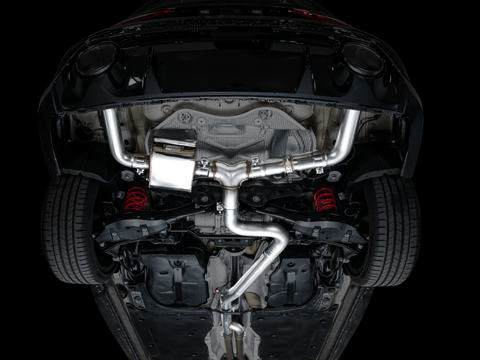Smooth bends, tight packaging, and two attitudes. The SwitchPath™ Exhaust is comprised of handcrafted 3-inch and 2.5-inch U.S.-sourced T304L stainless steel single pass, 5-cylinder-specific tuned driver’s side muffler with a valved passenger-side tip outlet. SwitchPath™ retains the factory valve behavior and obeys the ECU's commands based on throttle input, engine speed, Drive Select, and the factory-issued exhaust button within the cabin. Sneaking out in the morning or creeping through town? Close the valve. Drop the hammer (or click into Dynamic mode), and your RS 3 will sing a signature AWE tune with enhanced RS burbles that will provoke a firm grin. AWE's Lifetime Warranty, No CEL Light Guarantee, and Perfect Fitment Guarantee come standard.