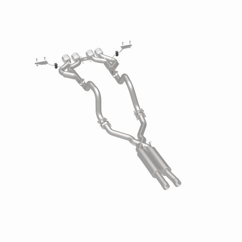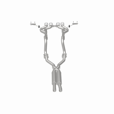 The MagnaFlow 2000-2004 Chevrolet Corvette Competition Series Cat-Back Performance Exhaust System 15281 brings an aggressive, attention-grabbing edge to the deep resonant exhaust note we're so well known for. This exhaust kit is designed to enhance your 5.7L 2000-2004 Chevrolet Corvette with dyno-proven performance made possible thanks to fast-flowing mandrel bent 2.5in. main piping and 2 Straight-Through mufflers ending in a Quad Center Rear exit with 4in. Polished Welded-On Double Wall Angle Cut Rolled Edge tips featuring a sporty finish. The exhaust system's cat-back layout replaces your ride's exhaust system from near the catalytic converter on back. Exhaust system 15281 is engineered to make your vehicle's engine produce Aggressive exterior and Moderate interior sound levels, befitting its competition-oriented design. 15281's direct-fit design makes installation a breeze thanks to the use of advanced 3D scanning techniques. This performance exhaust system is made of 100% durable and corrosion-resistant stainless steel and produced using CNC precision robotic manufacturing, all backed by MagnaFlow's limited lifetime warranty. Please check to ensure compliance with local noise regulations.
