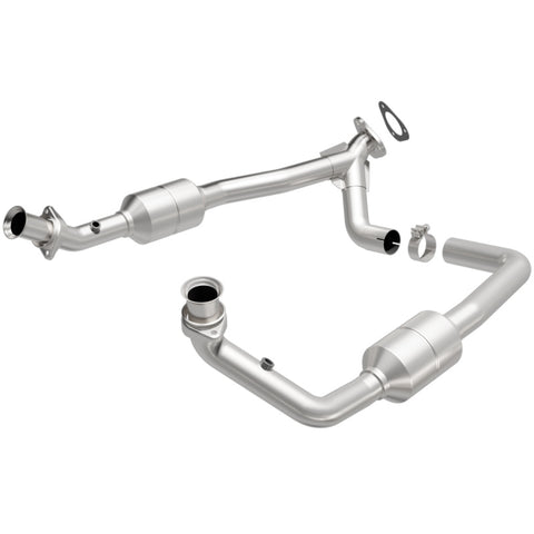 Keep the check engine light off with MagnaFlow HM Grade Federal/EPA Compliant Direct-Fit Catalytic Converter 24307. With features including free-flowing mandrel-bent tubing and highly corrosion resistant stainless steel construction, easily install this spun body converter yourself using the proper tools, no cutting or welding required. MagnaFlow's state-of-the-art metrology department uses the latest 3D scanning systems during research and development, so you can be confident that your new part will fit and function like the original equipment. By replicating the OE spun body design, the single laser fusion weld greatly reduces the possibility of a leak, and our compact, low-mass design also allows for greater thermal efficiency. Designed to fit the 2000-2003 Ford E-350 Super Duty, 2000-2002 Ford E-250 Econoline, and more, this direct-fit catalytic converter also interchanges with OE parts 1C2Z-5F250-BA and YC2Z-5F250-AA, among others. The included gaskets & hardware reduce the possibility of a leaking seal while avoiding the need to reuse corroded factory parts for installation. This replacement part is designed to meet or exceed Federal emissions requirements set forth by the EPA, complying with legal standards for OBDII Federally registered vehicles with Federal/EPA Emission systems.