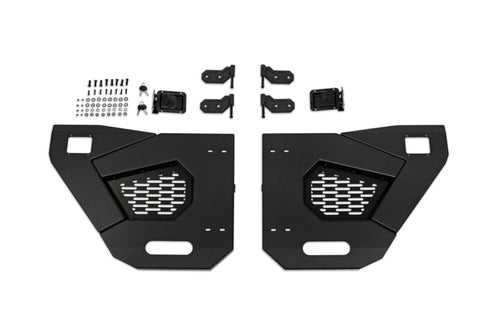 The DV8 Offroad Jeep Half Doors were designed for an open air experience, while still providing protection for the passengers. With these doors it?s easier to see the trail beside and below you to keep an eye out for large rocks and other obstacles. It features a black mesh molle compatible panel at the center of the door. The design is perfect for attaching gear like pouches, a multi-tool, and other molle accessories. These panels can be removed for even better trail visibility. They can also be sanded and painted to match your body or other accessories.