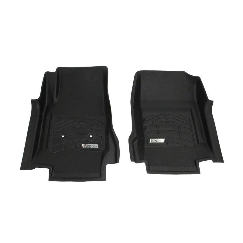 Wade Sure-Fit Front Row Floor Mats are custom full-coverage designs. They are made of rubberized copolymer and have a rigid core and tactile surface. They come equipped to accommodate OE retention hooks were applicable. The front row driver and passenger areas are digitally measured for the most accurate fit and is designed to protect the OE carpet. Available in black gray or tan. Made in the USA.