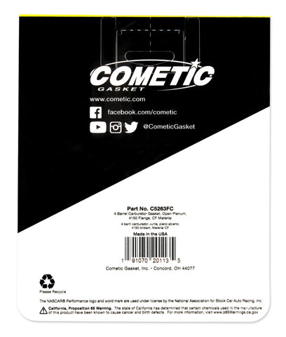 Cometic Gasket Inc. Carburetor Gaskets are manufactured from a high performance inspired compressible fiber that seals tight the first time. This highly durable material is compatible with a wide assortment of fuels and additives. Our gaskets are precision die-cut to ensure a perfect fit every time. They provides torque retention, crush resistance, and sheer strength and seals using low clamp force while releasing easily. It will not stick to carburetor or intake manifold and can be reused. Available for a wide range of carburetor models and styles.