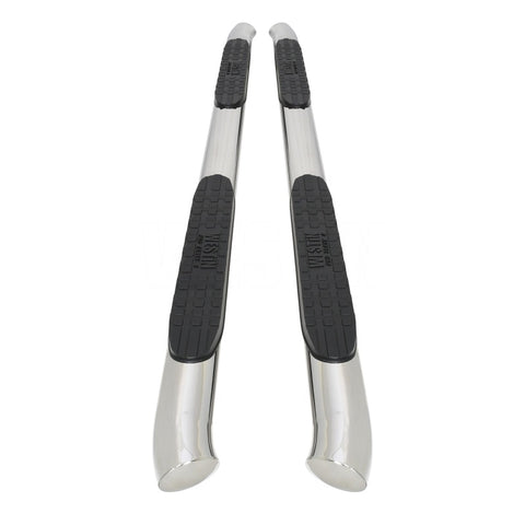 Add style and functionality to your truck with these easily installed oval tube step bars. The powder coated black or polished 304 stainless steel finish and angled ends with fully welded caps will enhance the appearance of any truck while the 4 textured logo step pads give you sure footing to ease cab access. The included mount kit includes everything required for installation including zinc plated stainless steel hardware and detailed instructions.