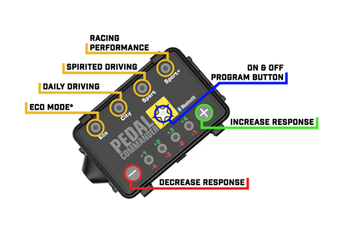 Why do you need Pedal Commander?Pedal Commander is a throttle response controller. It removes response delays on your electronic accelerator pedal. Effectively, it allows your engine to respond faster. As a result, your car can accelerate faster. You paid lots of money for your car, but when you press your gas pedal, you feel like you are pressing a sponge. Have you ever noticed that old cars were more responsive?We have a solution for you!! to get rid of that lag.Pedal Commander has 4 different control modes: Eco, City, Sport, and Sport. Each control mode has 8 different sensitivity levels which you can choose. These 36 different parameters, in total, is what makes us different than others. Pedal Commander is programmable according to your desire to your car’s specifications. And now Available with Bluetooth capability.User Friendly Bluetooth Control