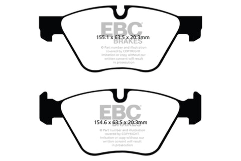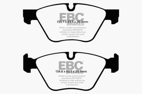Designed for premium street driving offering better brake effect up to 600-degrees C (1100-degrees F). EBC Greenstuff has a high initial brake effect and gives drivers confidence from first application of the brake pedal. There is no such thing as a NO DUST pad. The very nature of how a brake works requires that some dust be generated to avoid rotor vibration (shimmying). The EBC pad creates less dust and dust is more easily washed off than most. All pads create more dust as they are bedding in especially if rotors are worn. Nominal friction coefficient 0.55. For heavier faster cars and vehicles above 200bhp we strongly recommend Redstuff which DOES offer much less dust.