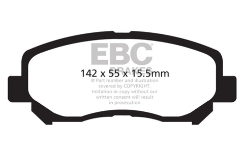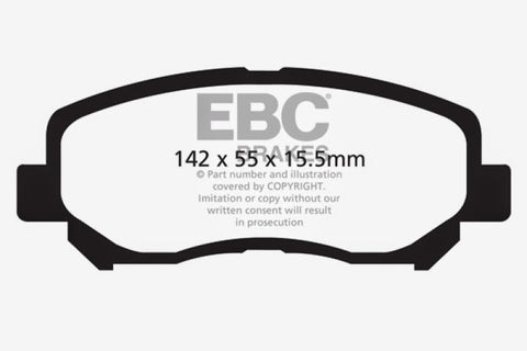 There are TWO reasons our customers love Redstuff, First because they are the lowest dust pad we have encountered by reducing dust by 60-90-percent. Plus the minimal dust you see is very easily removed with a simple sponge wash as it contains no steel fibre particles as in ALL OTHER pads. Second they brake like an alligator right from cold (as good as Original pads or better) and just get better as they heat up.This material is a Synthetic Fiber based brake compound enhanced with ceramic particles. If you have previously tried EBC redstuff (pre-ceramic compound) this material is light years ahead. It lasts longer; it brakes better and is quieter. Being a hard wearing pad, bed-in times can be as long as 1000 miles and drivers must be patient until the pad takes up the shape of their disc (brake rotor). This is a truly impressive fast road pad for repeated heavy braking.It emits far less dust than semi-metallic pads and has been proven to stop a passenger car/sedan/sport compact/hot hatch 13 metres quicker than OEM pads from 100mph/160kph. Features EBC Brake-In surface coating which conditions rotor surface and accelerates pad bed-in. Nominal friction coefficient 0.5 with approx. 50-percent dust reduction.Most EBC Red Ceramic pads are approved to ECE R90 brake safety regulation.