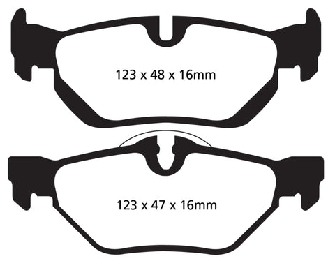 EBC Yellowstuff is an aramid fibre based brake compound with high brake effect form cold and is possibly one of the first ever compounds that can be used for STREET AND TRACK DRIVING. These pads do not require warm up but do get even stronger under the heat of hard driving. These are not a low dust pad and if your desire is for a low dust premium street use pad, you should consider EBC Redstuff.When considering full race use, Yellowstuff has been a strong favourite, having been used for two years in the Swedish Camaro Cup and at numerous other race events where a stock caliper system is fitted.It is also the choice of 90-percent of the Mazda MX5 Miata competitors in the UK race series and has an unblemished record as rotor friendly track pad for vehicles up to 2000 lbs weight or 200 BHP.In the USA the SCCA and NASA drivershave been testing Yellowstuff with feedback and good reports POURING in from a 543 test driver major market proving event with these groups. Read that figure again 543 test drivers.There is no guesswork here.