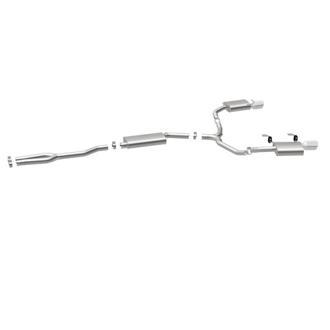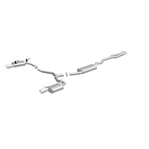 The MagnaFlow 2006-2010 Dodge Charger Street Series Cat-Back Performance Exhaust System 16936 brings out the personality of your 2.7L, 3.5L 2006-2010 Dodge Charger with our signature resonant, powerful engine tone and dyno-proven performance. Thanks to its fast-flowing, mandrel bent 2.5in. main piping and 3 Straight-Through mufflers ending in a Dual Split Rear exit with 4in. Polished Welded-On Double Wall Angle Cut Rolled Edge tips, this Dodge Charger exhaust kit has the performance chops to match its sporty sound and appearance. Upgrade your ride to the next level with an exhaust that has the pipes to put other Dodge Charger's to shame. With this system your vehicle will be producing Moderate exterior and Mild interior sound levels while leaving other cars and trucks feeling envious at every stoplight. Exhaust kit 16936 features a cat-back layout that replaces your ride's stock exhaust components from near the catalytic converter on back. Extensive 3D scanning during development has resulted in a direct-fit design that you can easily install yourself. 16936 is produced using CNC precision robotic manufacturing techniques and is backed by MagnaFlow's 1-year limited finish warranty and limited lifetime construction warranty.