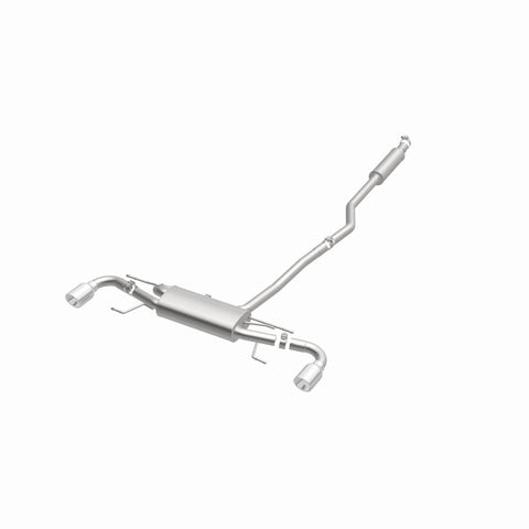 The MagnaFlow 2014-2018 Mazda 3 Street Series Cat-Back Performance Exhaust System 15297 brings out the personality of your 2.0L, 2.5L 2014-2018 Mazda 3 with our signature resonant, powerful engine tone and dyno-proven performance. Thanks to its fast-flowing, mandrel bent 2.25in. main piping and 2 Straight-Through mufflers ending in a Dual Split Rear exit with 4in. Polished Welded-On Double Wall Angle Cut Rolled Edge tips, this Mazda 3 exhaust kit has the performance chops to match its sporty sound and appearance. Upgrade your ride to the next level with an exhaust that has the pipes to put other Mazda 3's to shame. With this system your vehicle will be producing Moderate exterior and Mild interior sound levels while leaving other cars and trucks feeling envious at every stoplight. Exhaust kit 15297 features a cat-back layout that replaces your ride's stock exhaust components from near the catalytic converter on back. Extensive 3D scanning during development has resulted in a direct-fit design that you can easily install yourself. 15297 is produced using CNC precision robotic manufacturing techniques and is backed by MagnaFlow's 1-year limited finish warranty and limited lifetime construction warranty.