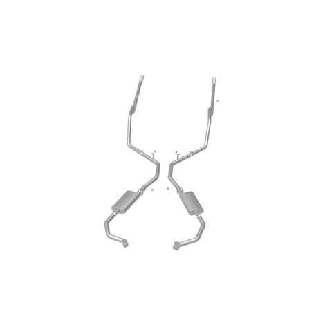 The MagnaFlow 1961-1964 Chevrolet Impala Street Series Crossmember-Back Performance Exhaust System 16724 brings enhanced engine sound and dyno-proven performance to your 3.8L, 4.6L, 5.3L, 5.4L, 5.7L, 6.7L, 7.0L 1961-1964 Chevrolet Impala with a healthy helping of our deep, resonant signature exhaust note at Moderate exterior and Mild interior sound levels. Thanks to its durable, corrosion resistant stainless steel design, this Chevrolet Impala exhaust system will handle whatever tarmac you decide to leave your mark on. This performance exhaust kit features a crossmember-back layout designed to replace your Chevrolet Impala's exhaust system from the crossmember on back. With its fast-flowing, mandrel bent 2.5in. main piping and 2 Straight-Through mufflers ending in a Dual Split Rear exit with 3in. Polished Welded-On Single Wall Angle Cut Rolled Edge tips, your muscle car will be sounding as awesome as it looks. Extensive 3D scanning during development has resulted in a direct-fit design that you can easily install yourself. 16724 is produced using CNC precision robotic manufacturing techniques and is backed by MagnaFlow's limited lifetime construction warranty.