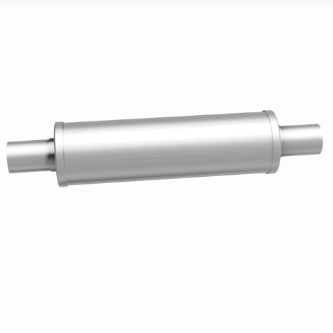 The MagnaFlow 4in. Round Straight-Through Performance Exhaust Muffler 10444 brings our world-famous exhaust sound and dyno-proven performance to your ride in a weight-optimized 4x4x14in. package with a premium satin finish. The straight-through free-flowing design of this round-bodied muffler's reversible, universal 2/2in. diameter inlet/outlet layout enables versatile installation options to match the spacing requirements of your vehicle. Due to the cutting and welding involved, professional installation is highly recommended. Internally, 10444 utilizes a perforated stainless steel core wrapped in stainless steel mesh and acoustic fiber fill to achieve a powerful, resonant tone. This muffler is made of durable, corrosion resistant stainless steel and produced using cutting-edge CNC precision robotic manufacturing techniques, all backed by MagnaFlow's limited lifetime construction warranty.