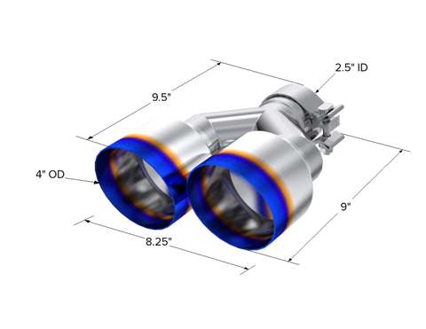 MBRP Burnt End Tip 2.5 ID Dual 4 OD Out 9.55 length Single wall 304 Stainless Steel Pass Side