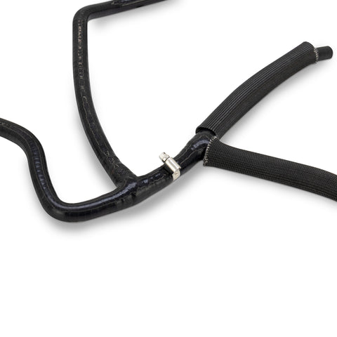 The 6.7L Powerstroke is a powerhouse built for serious work, but its factory coolant overflow hose uses plastic fittings that are known to crack and leak over time. Left unchecked, these leaks can lead to overheating and unexpected downtime. Upgrade your cooling system with a Mishimoto one-piece silicone Y-hose designed specifically for your 6.7L Powerstroke to eliminate those weak points and keep your truck on the road.--This direct-fit hose replaces those old, brittle plastic connections with a seamless silicone design that removes common failure points. A built-in one-way valve maintains proper coolant flow, and protective heat sleeves help guard the hose against high engine bay temperatures.--Made from multi-layer silicone that outlasts the factory rubber, this hose is built to handle the demands of the Powerstroke platform. Each kit includes new worm-gear clamps for a consistent, reliable seal and is backed by the Mishimoto Lifetime Warranty.