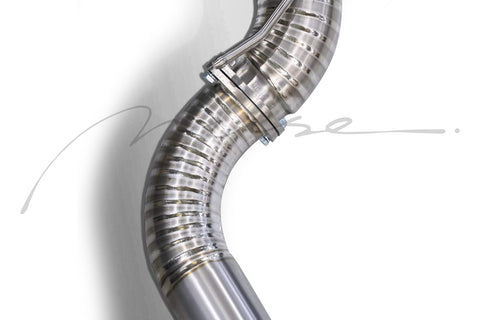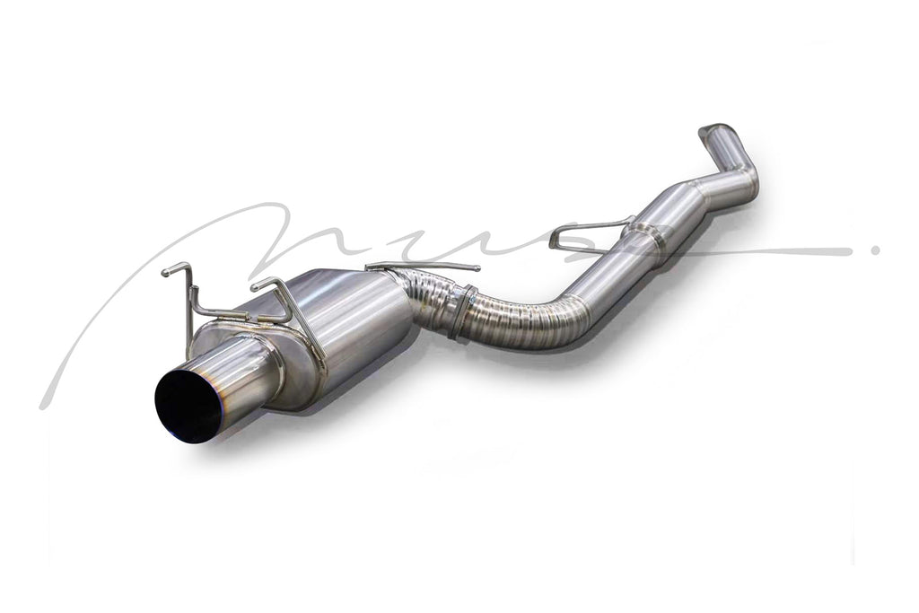 Featuring a complete lobster-weld, the two-piece titanium weighs in at a lightweight of 7.5 kg for an increase in both horsepower and weight reduction. The Muse BNR32 cat-back is finished with a polished titanium 102mm exhaust tip along with a subtle edge burn to suit the entire look.