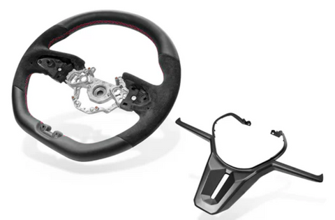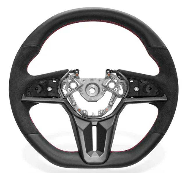 Description: We have redesigned and developed a steering wheel for the 4BA GTR R35 using popular ergonomic principles. The D-shape design offers better legroom, and the smaller diameter provides superior steering performance. The ergonomic grip design also significantly enhances the driving experience. The top and bottom in Nappa leather and sides in Alcantara.