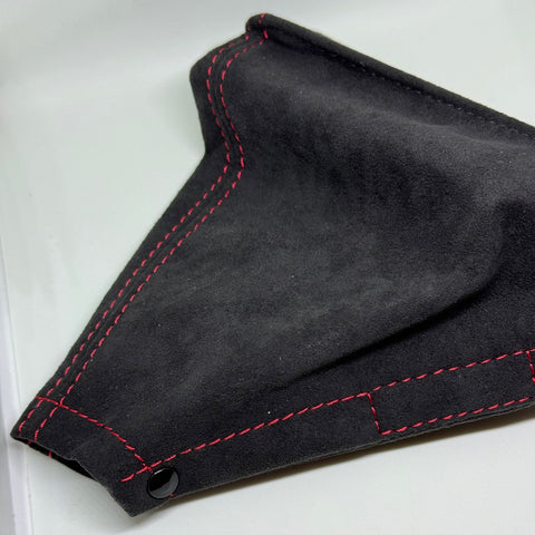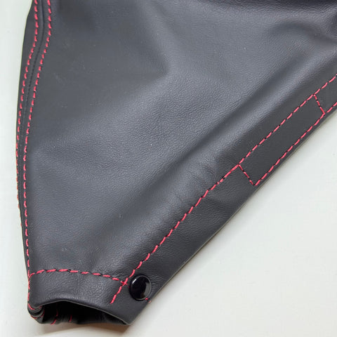 The perfect solution for the common worn out piece found on so many aged Skyline R32 / BNR32 GTR today. This brand new piece replaces the worn out shift boot and hand brake boot in contemporary luxurious materials.