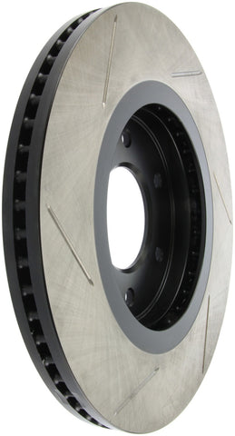 StopTech Slotted Sport Rotors are 1-piece direct replacement brake discs for factory brake systems and stock calipers that look great behind your wheels – and offer significantly improved braking performance. The unique slotting aids with heat and brake dust dispersal; prevents glazing of the pads; adds bite and improves wet and dry braking performance. Built to last; the black e-coating provides protection from corrosion and the high carbon metallurgy (in most applications) offers quieter operation; better crack resistance and increased performance.