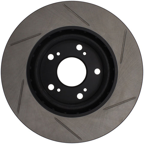 StopTech Slotted Sport Rotors are 1-piece direct replacement brake discs for factory brake systems and stock calipers that look great behind your wheels – and offer significantly improved braking performance. The unique slotting aids with heat and brake dust dispersal; prevents glazing of the pads; adds bite and improves wet and dry braking performance. Built to last; the black e-coating provides protection from corrosion and the high carbon metallurgy (in most applications) offers quieter operation; better crack resistance and increased performance.
