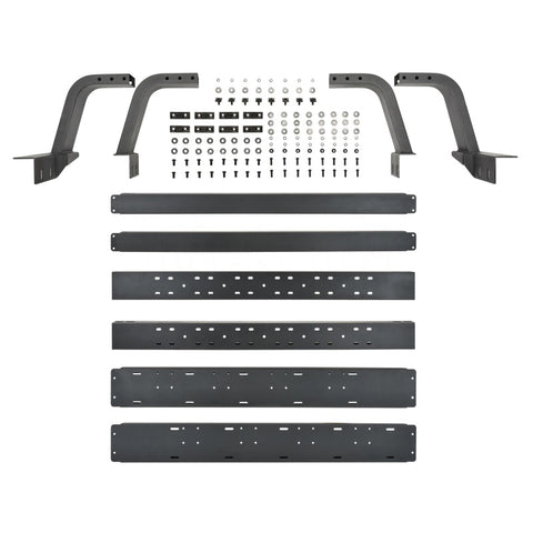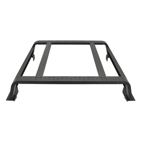 Maximize the cargo space and storage capacity of your truck with an all new Overland Cargo Rack from Westin. This multi-purpose bed rack "cargo management system" allows for a wide variety of off-road and overland gear storage, such as off-road jacks, RotoPaxTM gas cans , traction boards, shovels, rooftop tents, LED lighting and storage boxes, with multiple mounting positions and options. Constructed of 4" rectangular tubing and 14 gauge steel, this unique design utilizes the OEM bed rails for a no-drill mounting which is incredibly strong, but lightweight and easy to install. The low profile design was engineered to keep the cargo gear below the cab roofline, positioning most roof top tents to be flush with the top of the cab roof to reduce wind resistance and allow for easier garage parking. You can choose your preferred rack length (available in either 45" or 57" options), and top support rails which can be mounted in multiple positions as needed. It can also accommodate a wide variety of roof top tent footprints, making the Overland Cargo Rack perfect for any back country adventure.